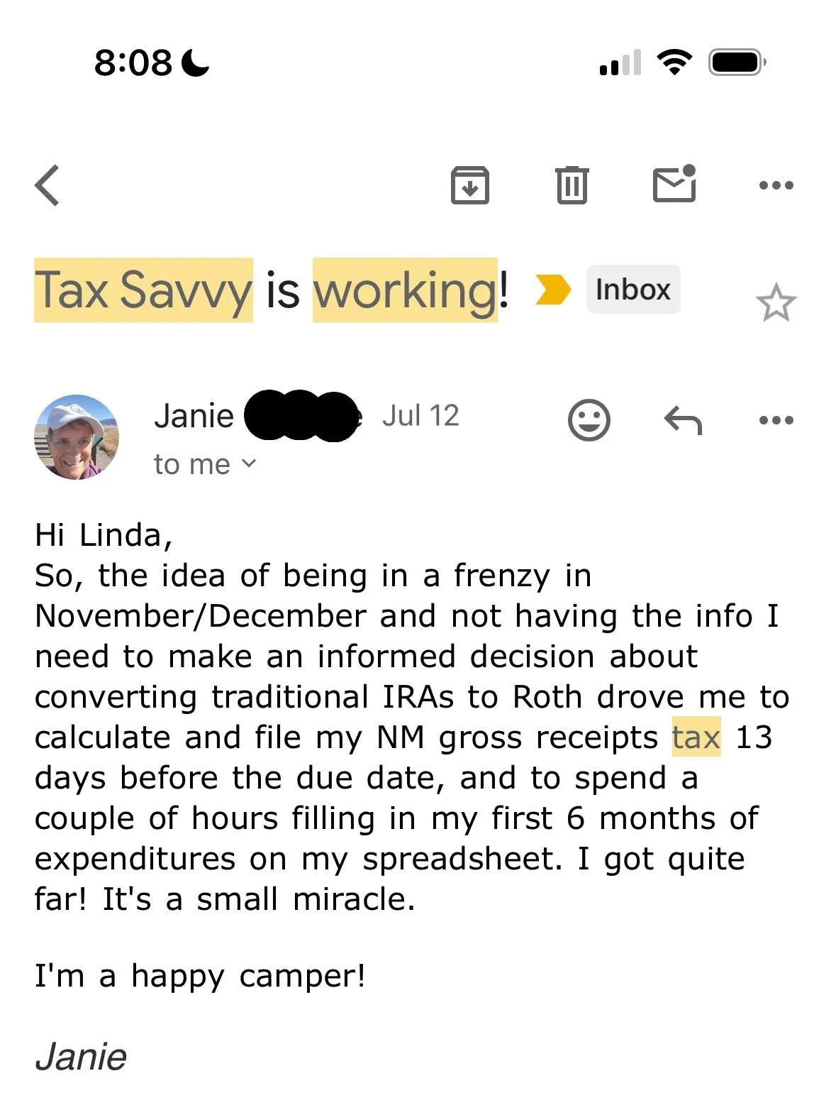 Say goodbye to confusion, anxiety, and overpaying taxes. Through step-by-step guidance and expert support, Tax Savvy Mentorship turns your stress into peace of mind, frustration into clarity, and procrastination into confident action.